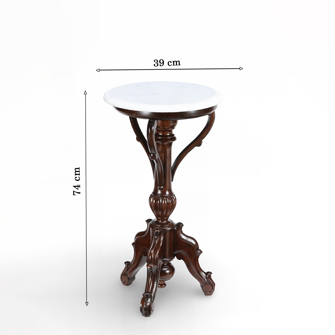 Benza -Elegant Walnut Finish Sheesham Wooden Pedestal Table| Classic End Table- Wooden Slice
