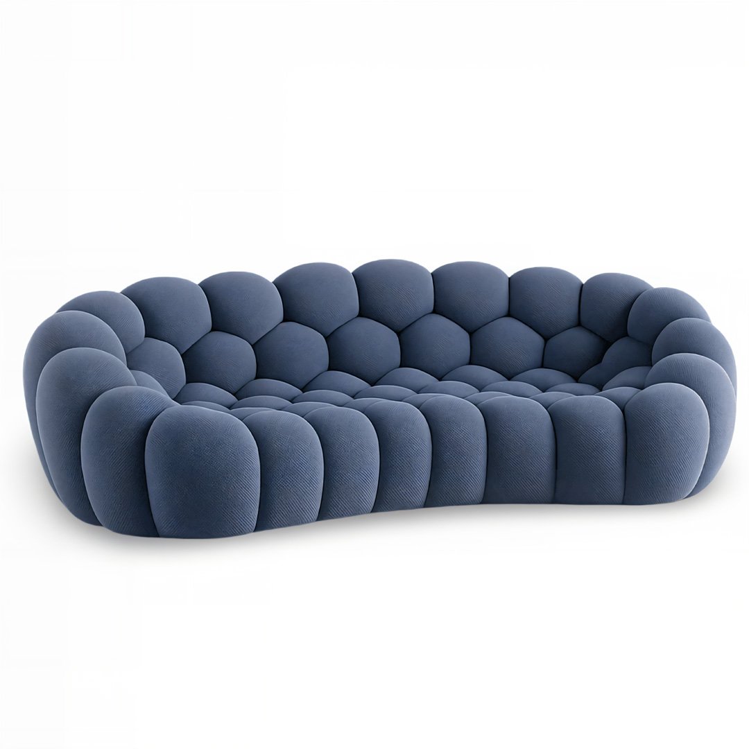 Make a bold artistic statement in your home with our “Bubble Blue ” handcrafted Mango wood sofa. This truly unique 3-seater features an innovative, plush “bubble” or “pebble” design, offering unparalleled comfort and a whimsical yet sophisticated aesthetic. Upholstered in a soft, inviting fabric, its organic shape and modular appearance create a stunning focal point in any contemporary space. Built upon a sturdy, handcrafted Mango wood internal frame, this sofa combines sculptural artistry with durable craftsmanship for a truly exceptional lounging experience.