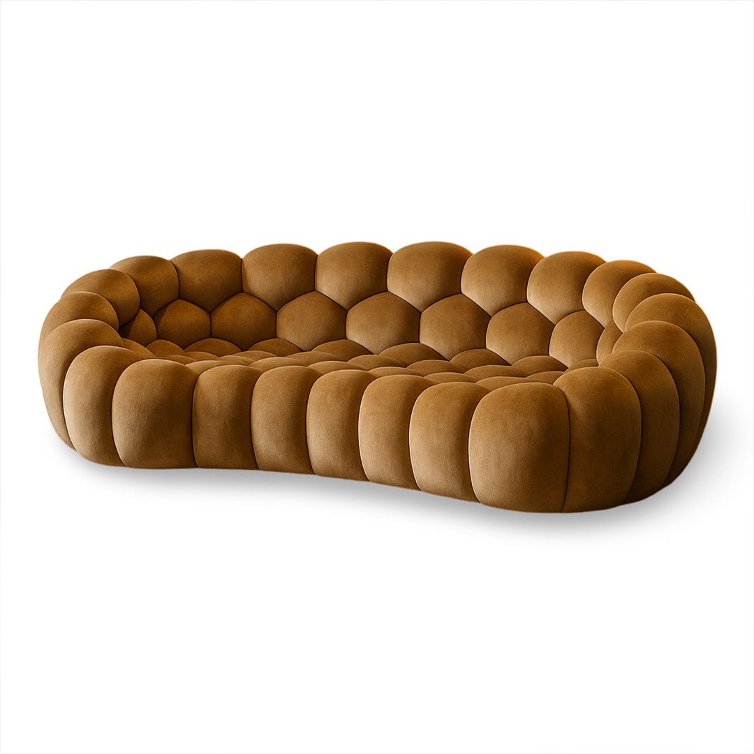 Wrap yourself in sculptural comfort with our “Bubbly Brown” handcrafted Mango wood sofa. This distinctive 3-seater features an innovative and inviting “bubble” or “pebble” design, offering both playful aesthetics and supreme lounging. Upholstered in a rich, warm tan or brown fabric, its organic and undulating form creates a captivating focal point in any contemporary or eclectic living space. Built upon a robust, handcrafted Mango wood internal frame, this sofa perfectly blends artistic design with durable construction, promising a truly unique and comfortable seating experience.
