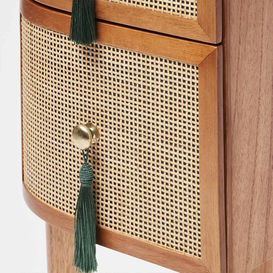 Natural Wood Finish, Natural Rattan, Green Tassels
