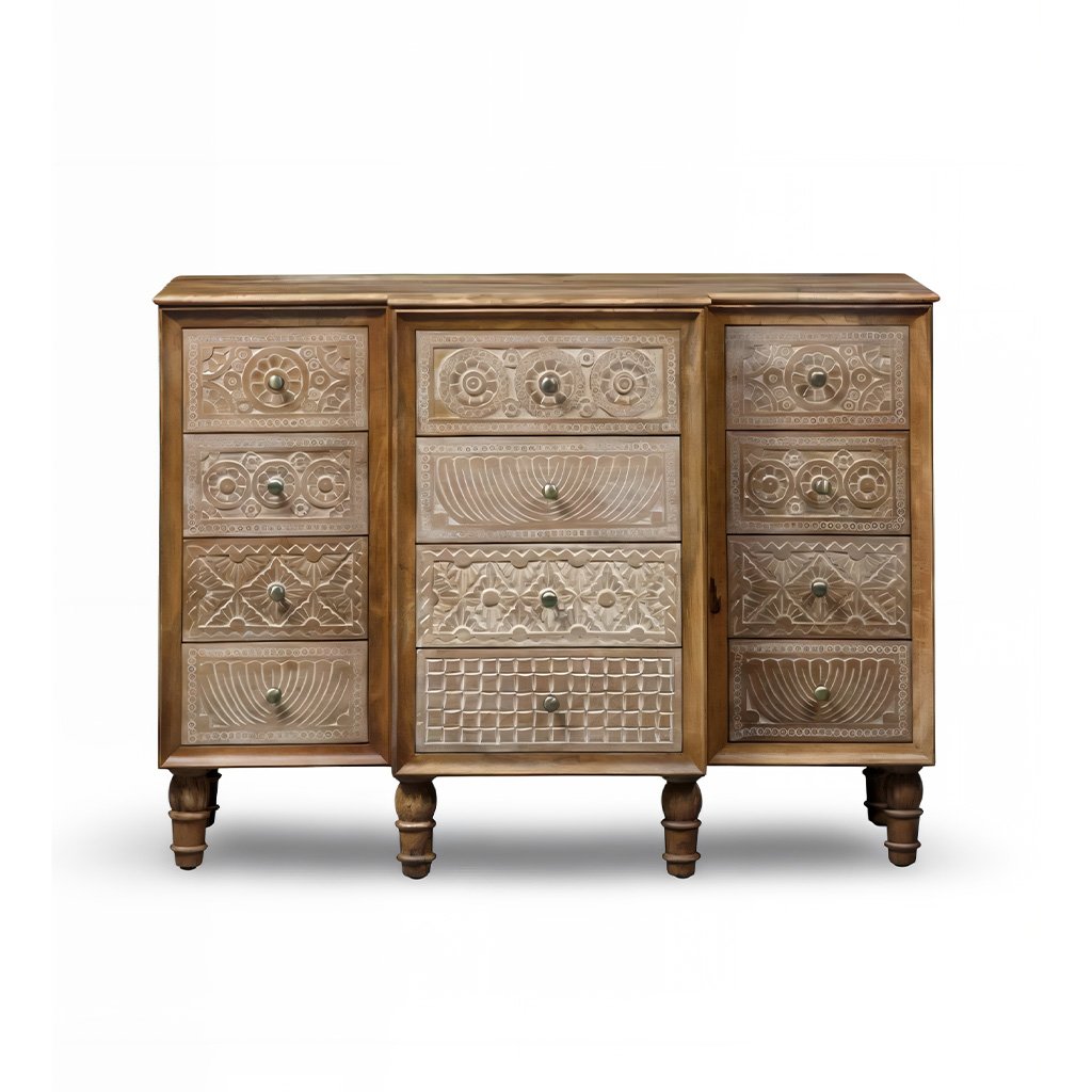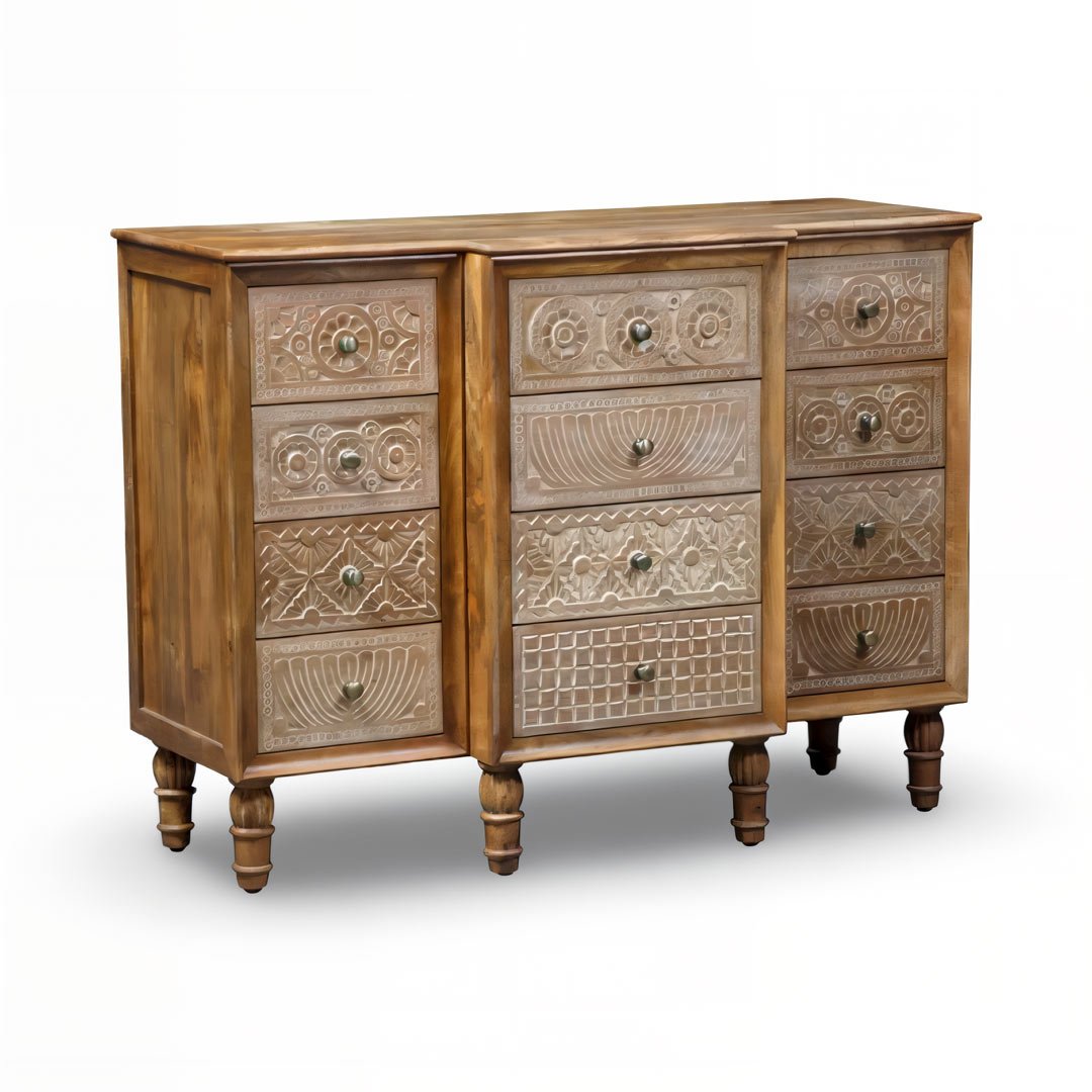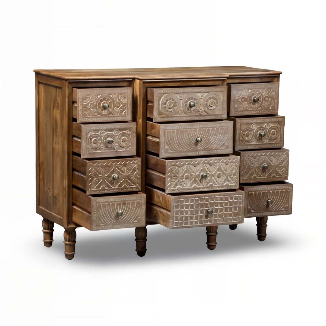 Carvello Hand-Carved Sheesham Wood Console Table – Multi-Drawer Chest Of Drawer