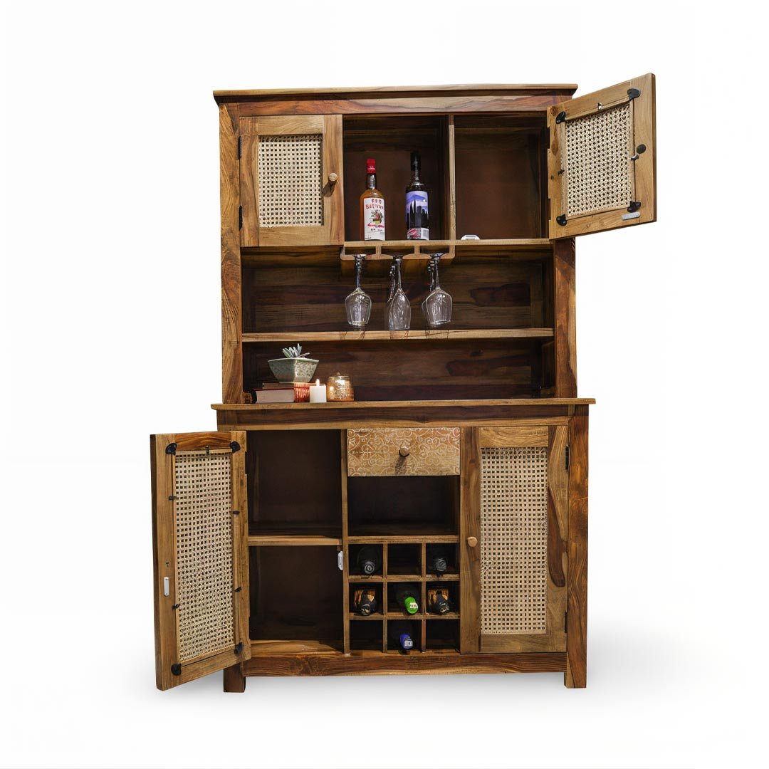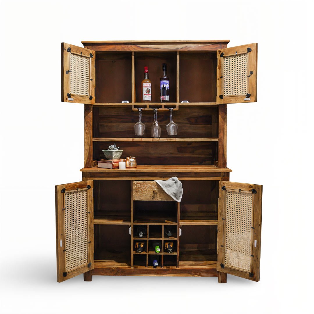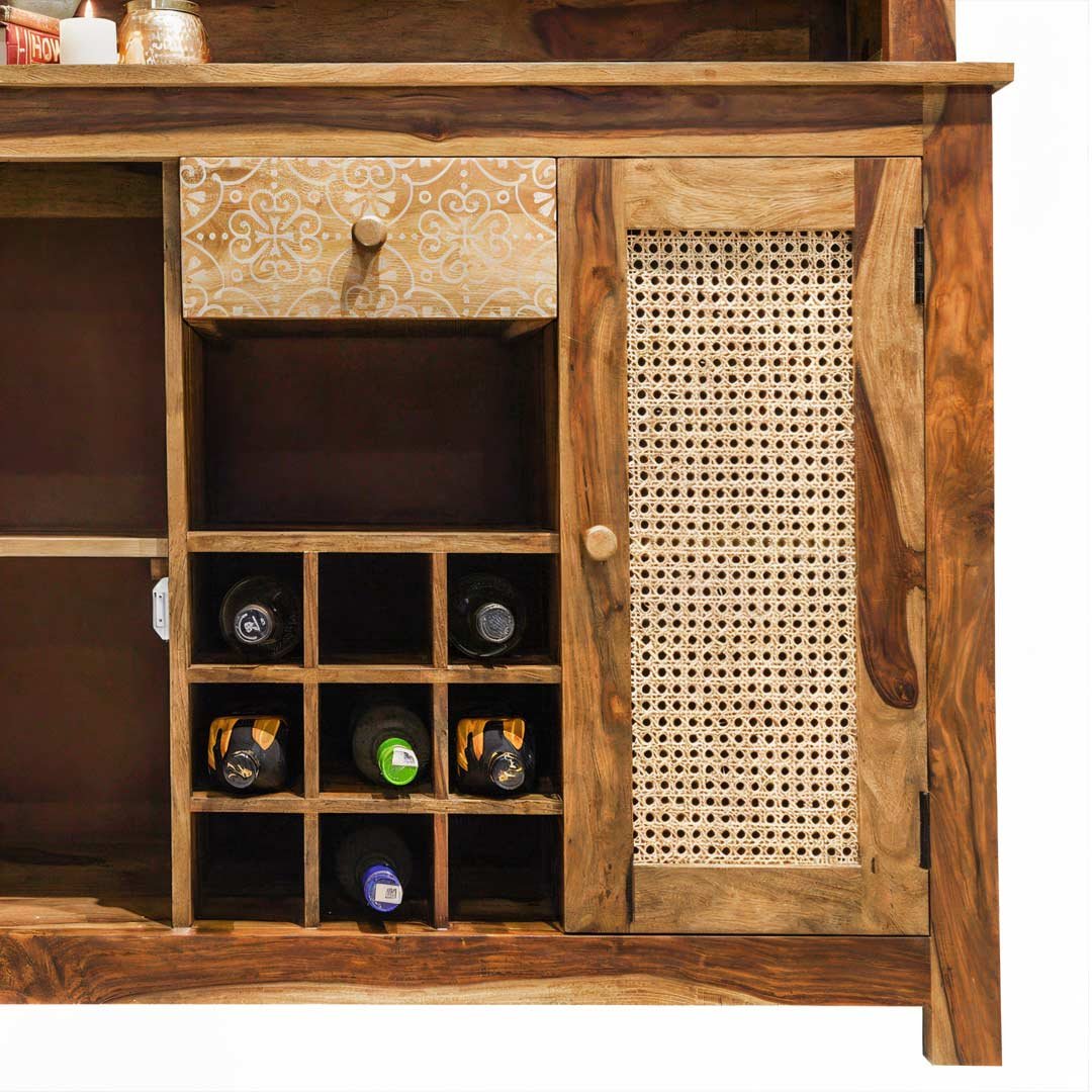 Driftbar – Handcrafted Sheesham Wooden Bar Cabinet with Rattan Doors