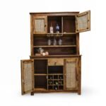 Full bar storage for dining/living areas; suits rustic/bohemian styles.