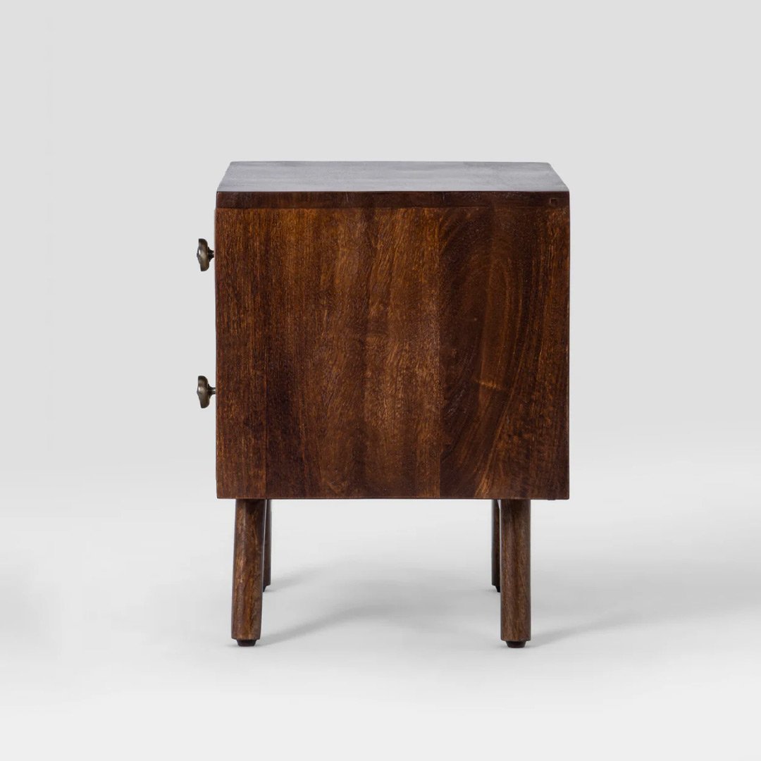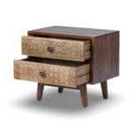 Mysa Handcrafted Mango Wood Carved Bedside Table | Rustic Farmhouse Nightstand