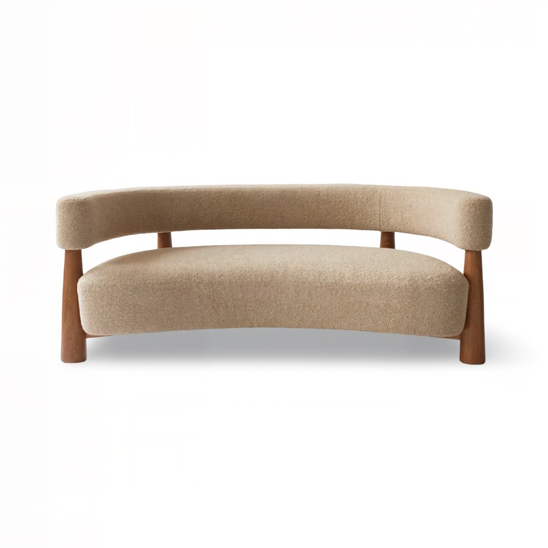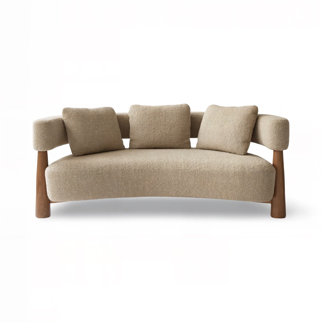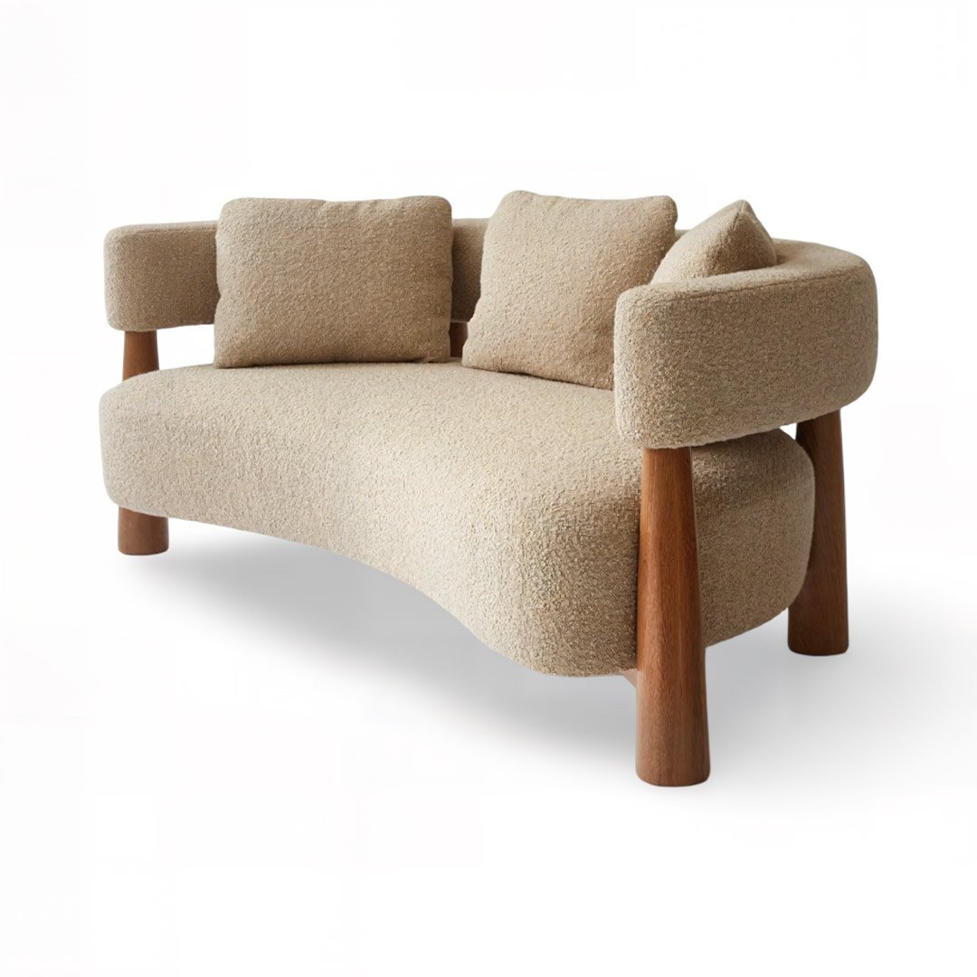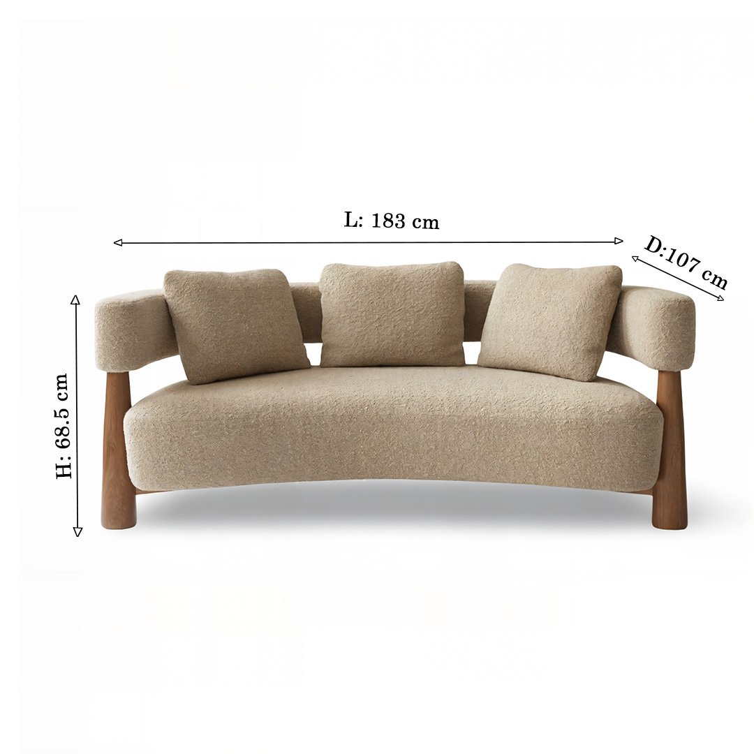 Harmonic Handcrafted Sheesham Wood 3-Seater Sofa – Modern Bouclé Curved Sofa for Living Room & Lounge