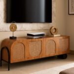 • Rustic TV units with brass hardware