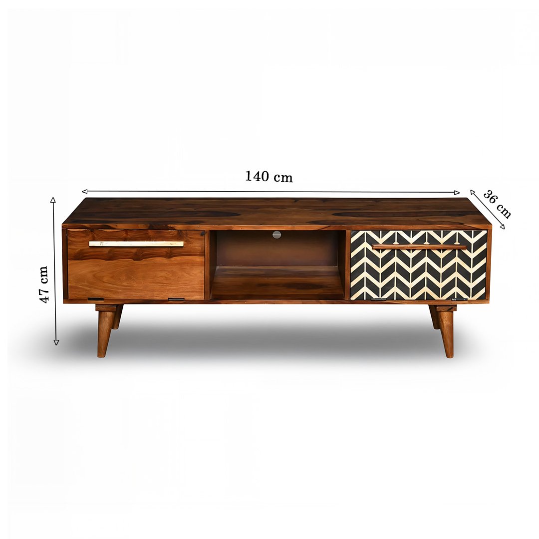 Vistaro – Handcrafted Sheesham Wooden TV Unit with Bone Inlay Detailing