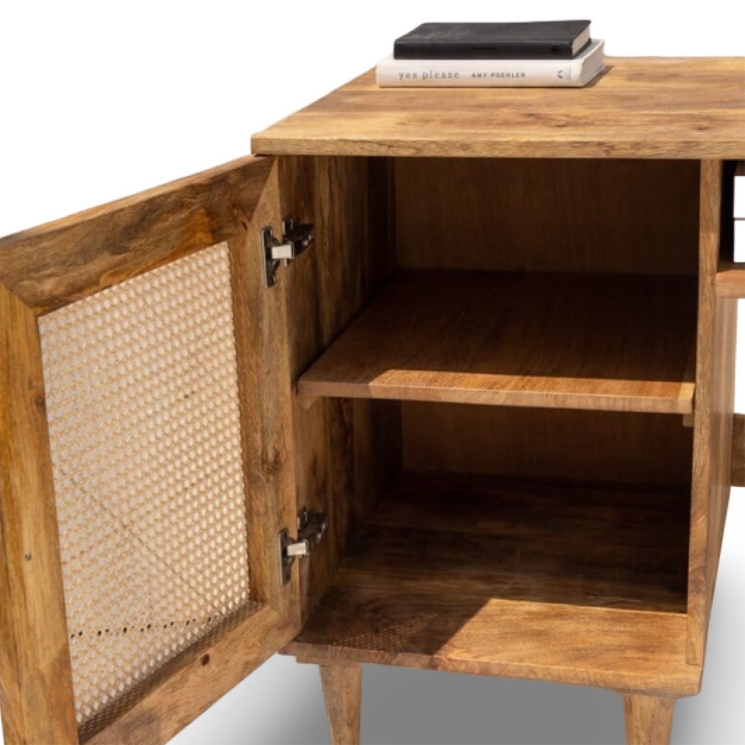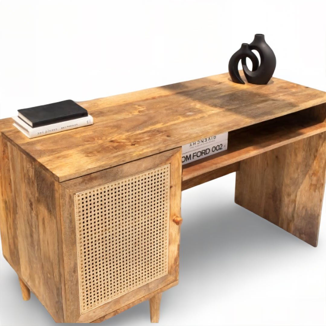 Woodwise – Handcrafted Sheesham Wooden Study Table with Cane Cabinet