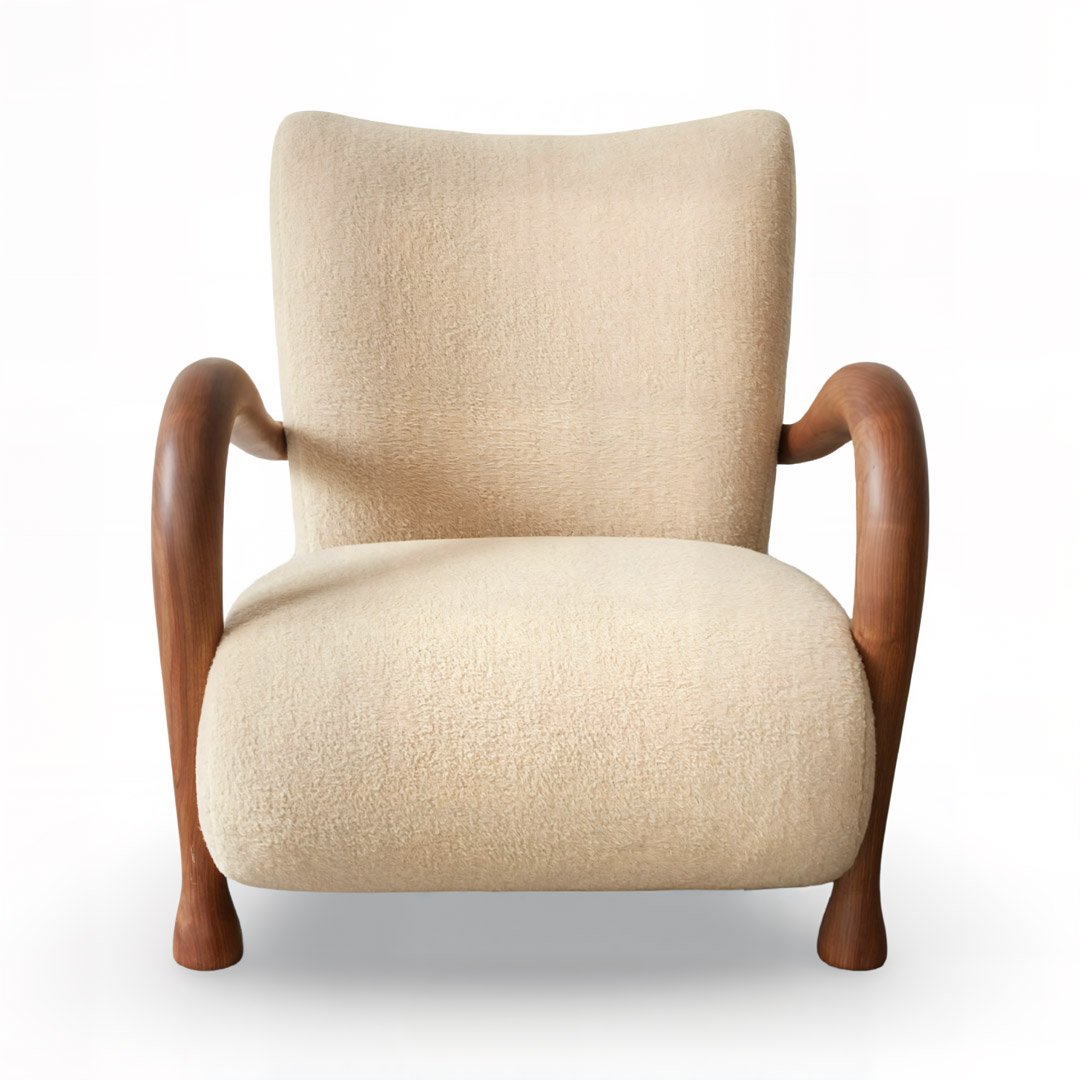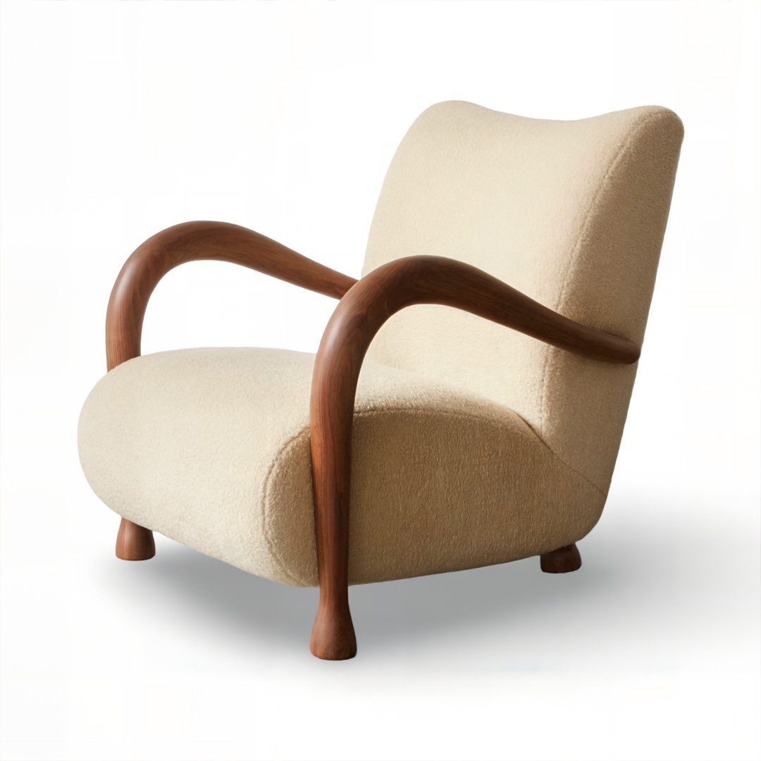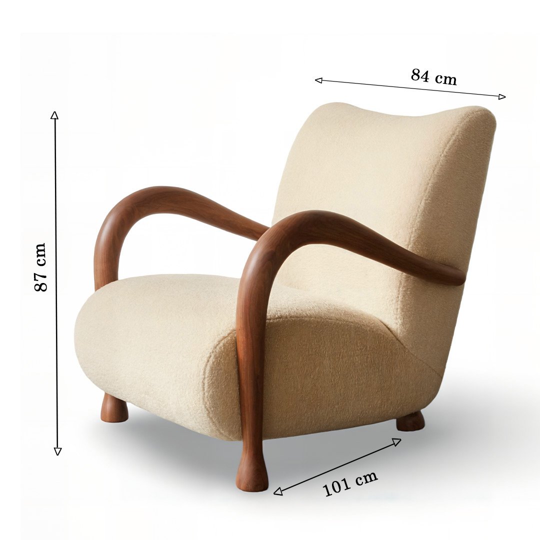 Zuri Handcrafted Sheesham Wood Armchair – Modern Curved Arm Sofa Chair | Bouclé Upholstery- Wooden Slice